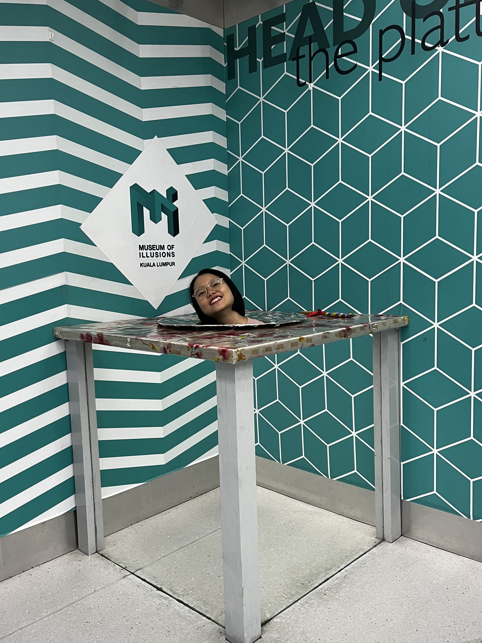 Gần khách sạn có một Bảo tàng ảo giác, một nửa số tiền mặt mình mang tới Kuala Lumpur là dùng để mua vé vào chiếc bảo tàng này. Cũng vui. Dù mình đi một mình nên có một bạn nhân viên đi theo xong bảo để bạn ý chụp ảnh cho nữa. Eo ơi đáng yêuuuu xỉuuuuuu ýyyyyy